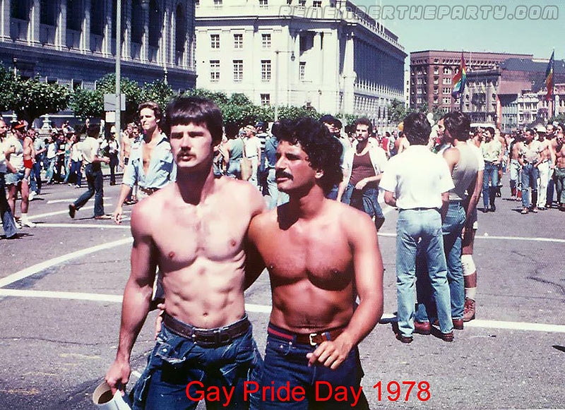San Francisco Gay Pride 1978. Look at these two beautiful young men. This picture could have been taken recently, the only fashion difference being that today the pants would be worn about four inches lower on the hip.