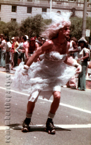 If my friends could see me now! In the San Francisco gay parade, riding on the back of a red convertible naked but for a feather boa! Ooh honey, it's a long way from Boise Idaho!