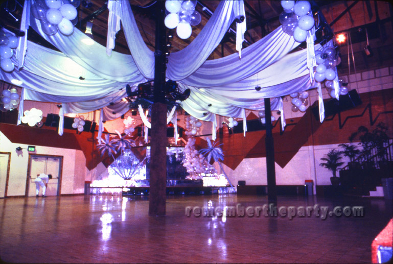 It's March 1978, the club had opened in mid December of '77 with no liquor license and was only serving soda and juice. Here we see the club all dressed up for the White Party. Notice that the famous mirror ball cluster is not yet in place. The center display is a carousel of spotlights with rotating color wheels. Rumor has it that this was originally used for a Rolling Stones concert at Madison Square Garden.The clubs lighting system was designed by Phoebus Lighting and the Graebar sound system had 12,000 watts of distortion free sound.