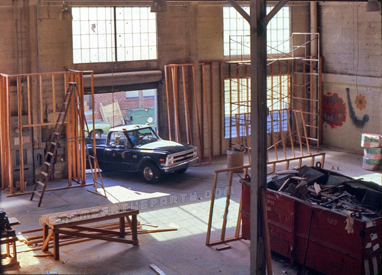 In 1977 when Dick Collier took over the old KQED television studio at 520 4th St. he knew he had a lot of work to do. This picture, taken in Oct of '77 shows the exit to the alley and the corner where the pyramidal DJ booth would later reside.