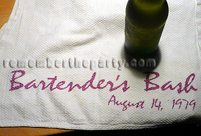 This bar towel dates from a 1979 Bartender's Bash at the club. The towels were among the goodies given to these hard working people who kept us all quenched the rest of the year.