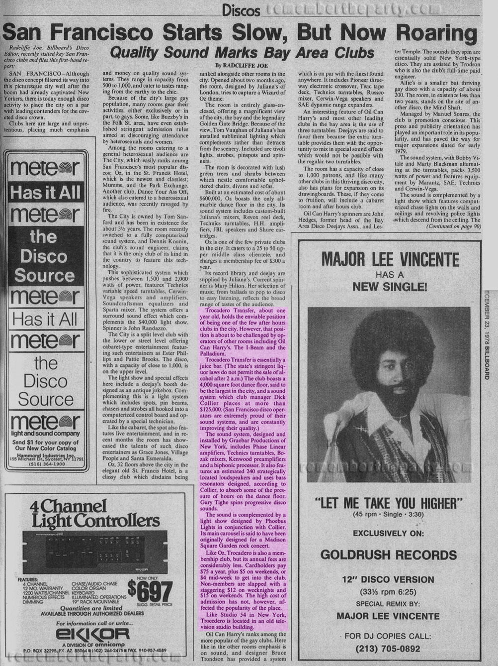 How fortunate we are that Keefe saved this 1978 article from Billboard magazine. This is a great piece about the clubs of the time, including The Trocadero Transfer.