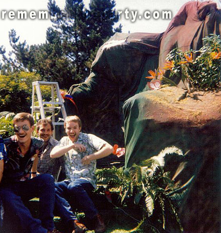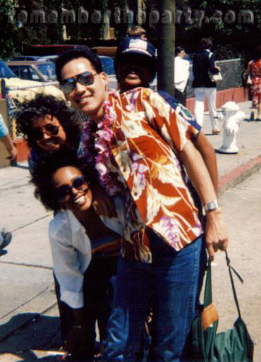 Aloha Records' float 1982. Staff members Tom M. and Steven P. (The Tauntress!) and Mark M, were Keefe's co-workers as well as his good friends. You would often see this group of Aloha Records staff members partying at the Trocadero with their lovely friend and other co-worker Miss Karen. Anyone who was lucky enough to share a festive moment during morning music at the Troc with this group would soon discover that Miss Karen's tasteful, designer handbag held secrets to enhance the morning music experience. As K.C. would say, "They're a must!"