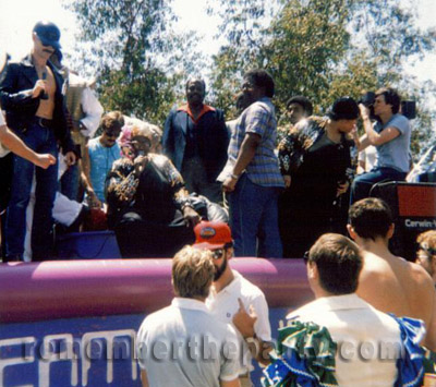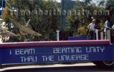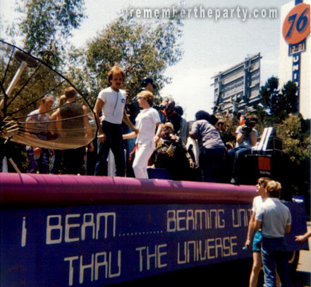 Early 80's Gay Pride float for the I Beam setting up at the foot of the Bay Bridge in S.F with its "2101 A Space Odyssey" type text. Note Two Tons O' Fun on board getting ready to transmit and let those aliens know that "Earth Can Be Just Like Heaven!" BTW, this picture was taken near the location of today's Sound Factory.