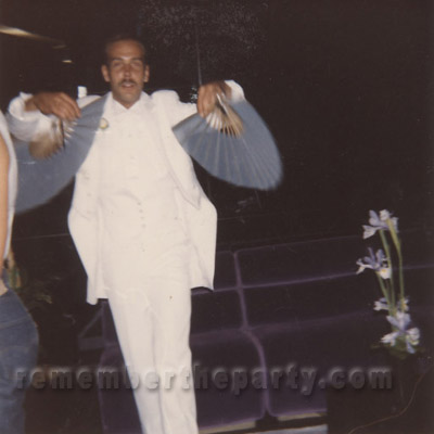 Trocadero staff and family member Gary Bear with fans, getting into the White Party atmosphere.