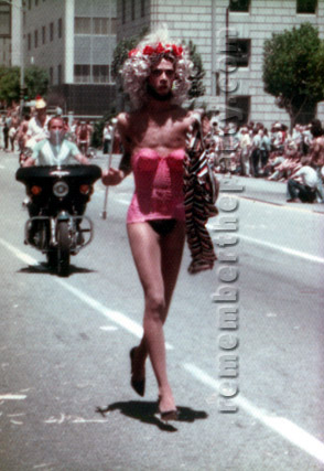 This Mercury Colony Park station wagon is decorated with purple and white ribbons and has "Grand Duchess" on the banner. The duchess herself is regally seated on the roof flanked by two gladiators. Anyone know who this Grand Duchess might be?
