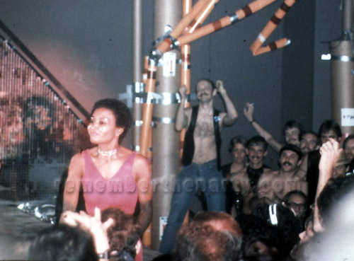 Standing to the right of Ms. Wills in a leather vest and no shirt is one of the many fan dancers of notoriety, Frank Teramani who was known as "the Dowager Empress." Third person to the right of the pole is Nicky Guinta. Just to the right of Nicky, the person with cigarette and hand on the wall is Jerry Shirley. Robert D. who helped us with this information, felt that this is a typical stance for Jerry who always referred to his friends with expressions such as "OK, Gladys!"